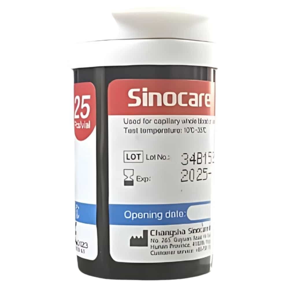 Les bandelettes de test de glycémie Sinocare sont conçues pour être utilisées avec des glucomètres Sinocare spécifiques pour la surveillance du taux de glucose dans le sang. Il est crucial d’utiliser les bandelettes adaptées au modèle exact de votre appareil, car elles ne sont pas interchangeables entre les différents modèles.
