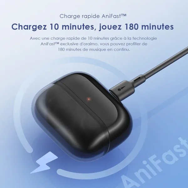Recharge rapide : La technologie AniFast™ offre 180 minutes de lecture musicale avec seulement 10 minutes de charge.